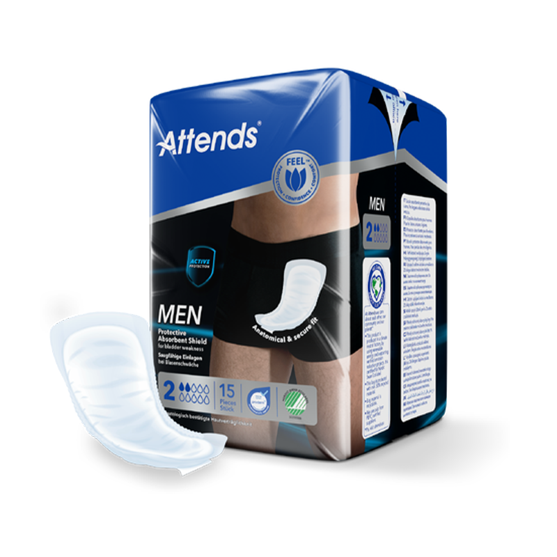 La coquille protectrice Attends For Men 2 est spécialement conçue pour les hommes ayant des fuites urinaires légères à modérées.Elle offre un ajustement anatomique masculin, garantissant confort, discrétion et protection efficace tout au long de la journée.