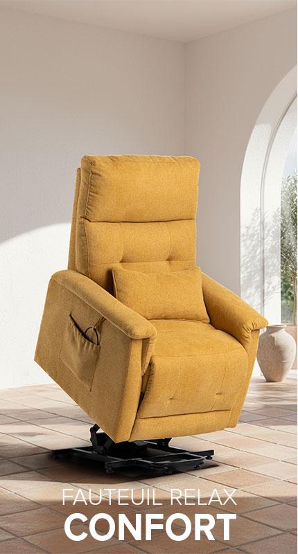 Un fauteuil relax (fauteuil releveur) aide à s’asseoir et se relever plus facilement grâce à un mécanisme motorisé fluide, tout en améliorant le confort d’assise au quotidien.