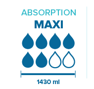 - Capacité d’absorption : 1 430 ml
